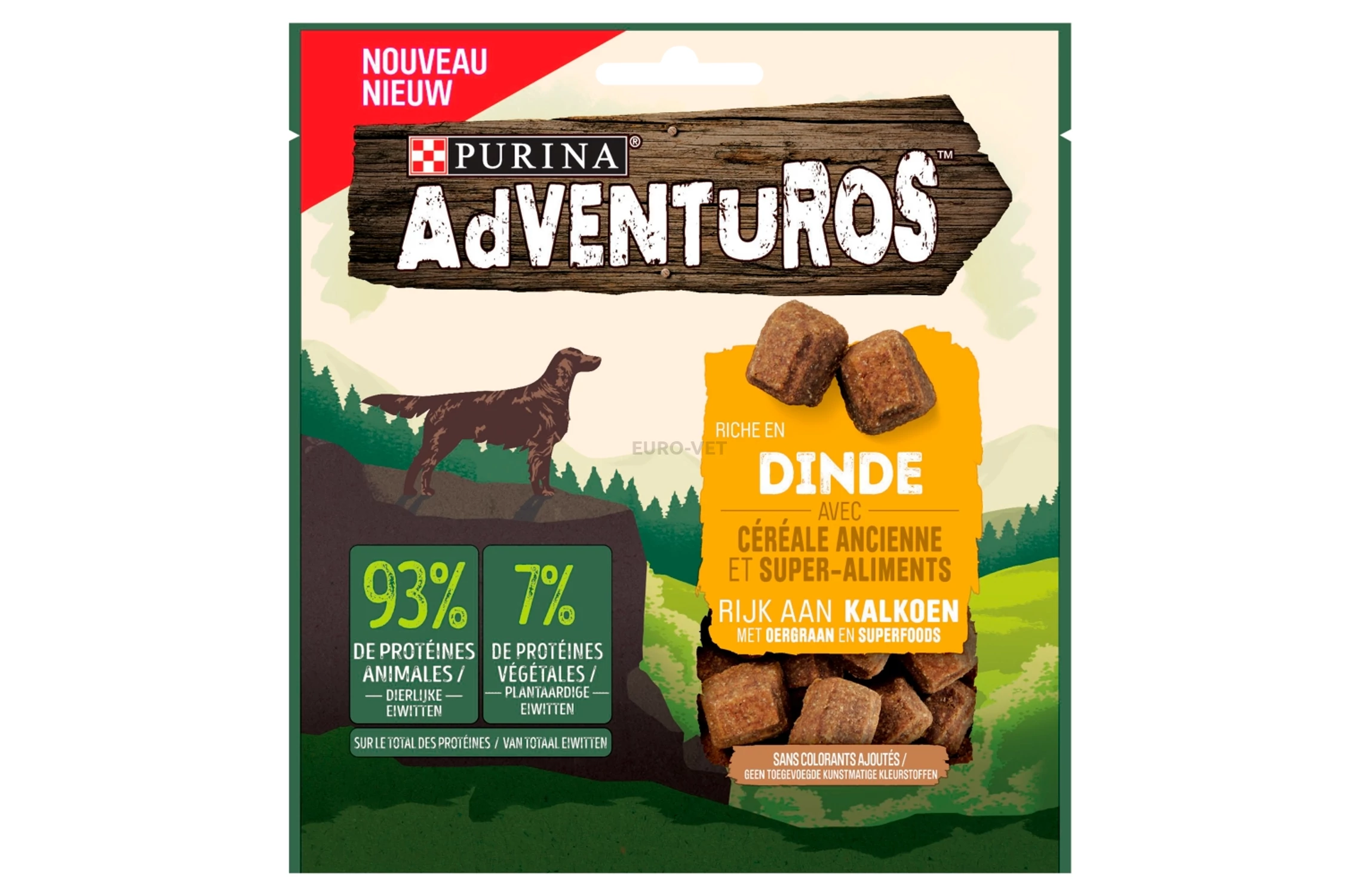 Szarvasmáj (20%), Szárított szárnyasfehérje, Búzaliszt, Glicerin, Szárított pulykafehérje, Szárított állati fehérje, Kukorica, Rizs, Köles (4%), Dehidratált borsó (4%)