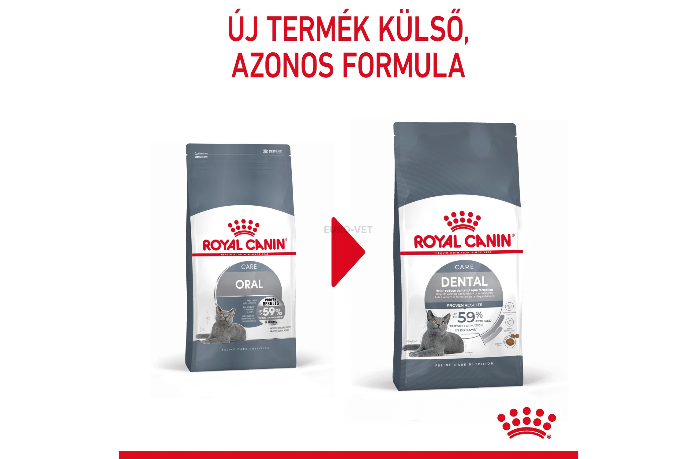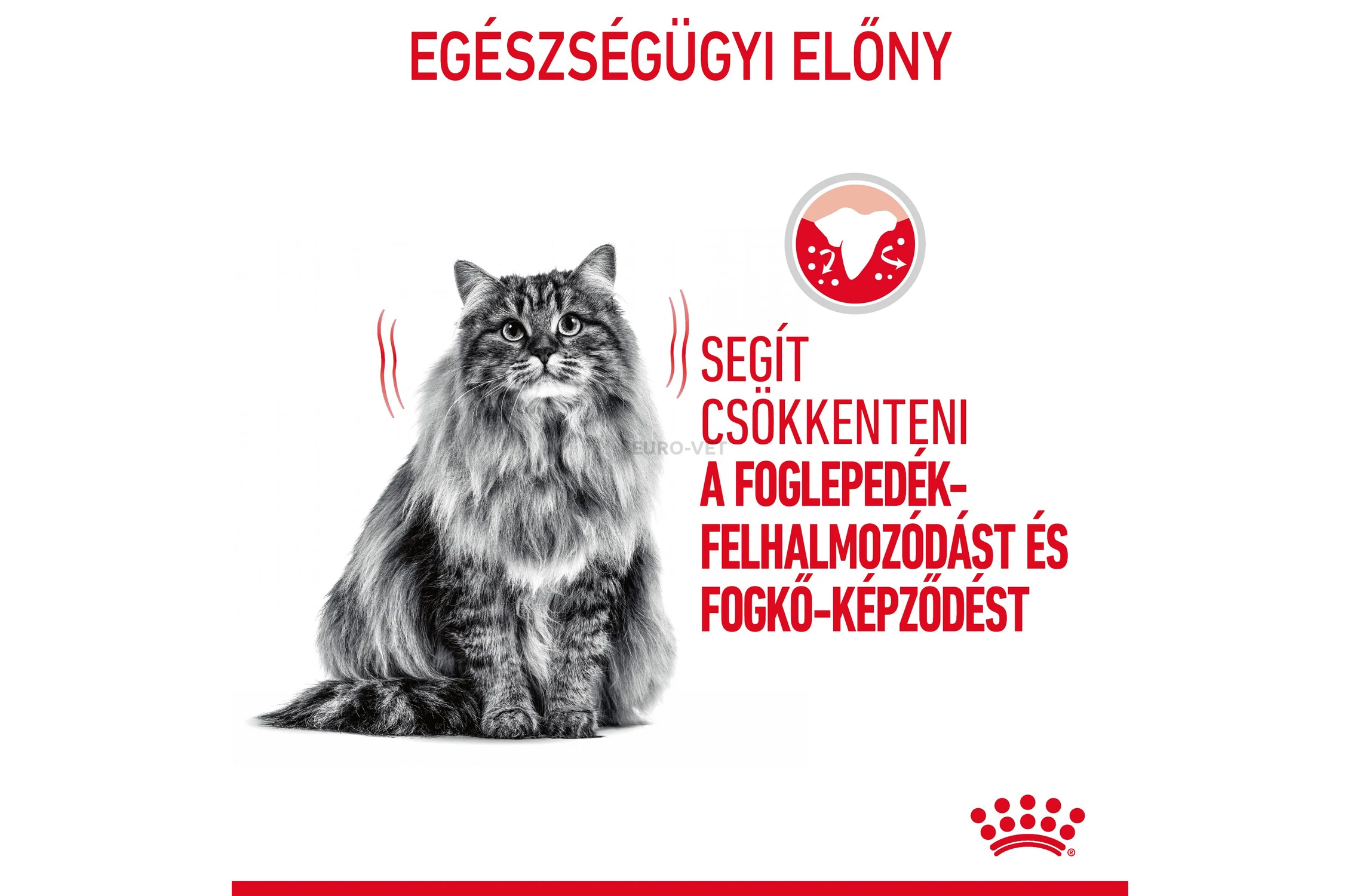 - Mechanical action: the specially designed ORAL CARE kibble, size, texture, and shape encourage the cat to crunch and thoroughly chew the food. This results in a daily „brushing” effect that reduces the formation of dental plaque.